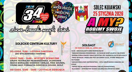 25 stycznia w Soleckim Centrum Kulury i Parku Wodnym odbędzie się 34. FINAŁ WOŚP.