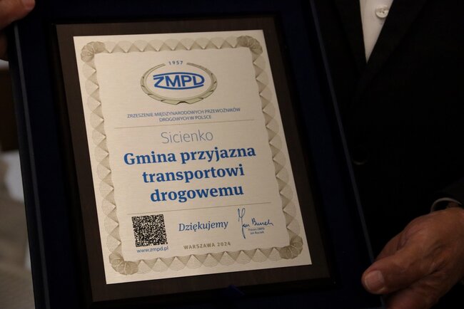 Gmina Sicienko przyjazna transportowi drogowemu. Prezes wręczył certyfikat