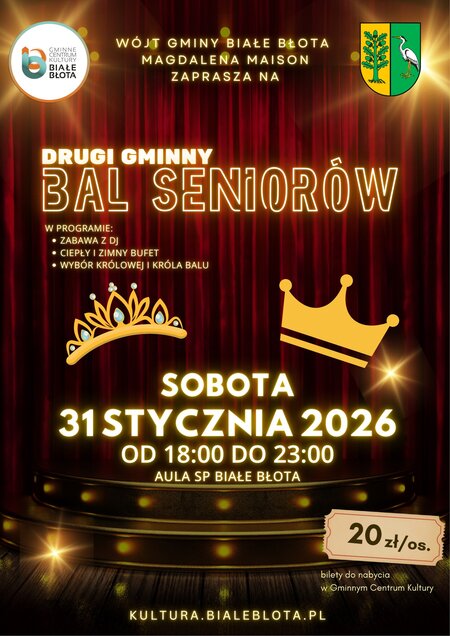 Wszyscy wiemy, jaką moc i energię mają Seniorzy w Gminie Białe Błota! Dlatego z ogromną #radością Magdalena Maison Wójt Gminy Białe Błota serdecznie zaprasza na Drugi Gminny Bal Seniorów – wyjątkowe karnawałowe spotkanie pełne muzyki, tańca, uśmiechu i wspólnej zabawy.