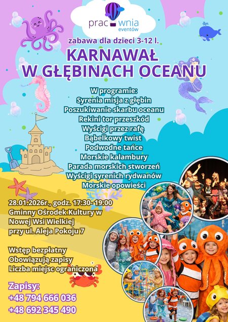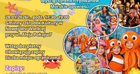 Gminny Ośrodek Kultury w Nowej Wsi Wielkiej zaprasza dzieci w wieku 3–12 lat na wyjątkową zabawę w głębinach oceanu!