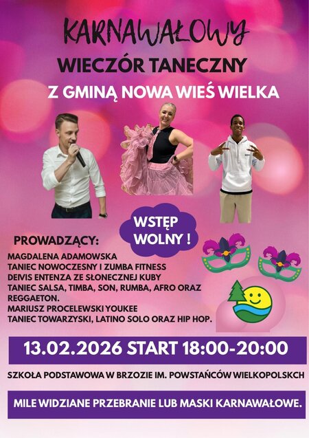 Nie może Was zabraknąć! Przed nami wyjątkowy wieczór pełen muzyki, energii i #fantastycznej zabawy w karnawałowym klimacie. Zapraszamy dzieci, dorosłych oraz całe rodziny – zabierzcie dobry humor, a jeśli macie ochotę… także maski i przebrania!