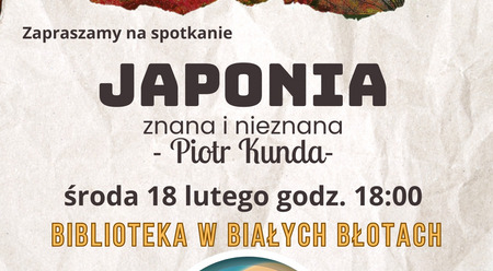 Już 18 lutego o godzinie 18:00 w bibliotece Gminnego Centrum Kultury w Białych Błotach wyruszymy w wyjątkową podróż do Japonii.