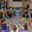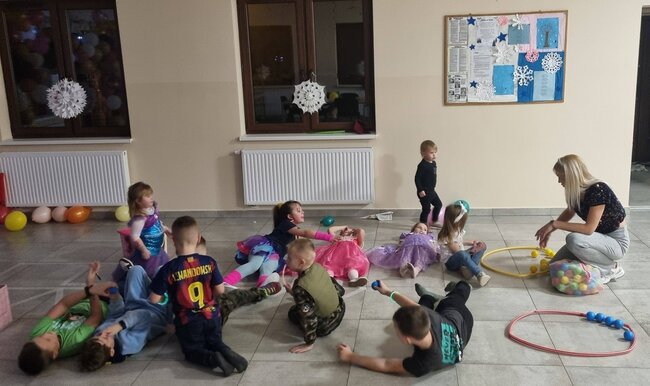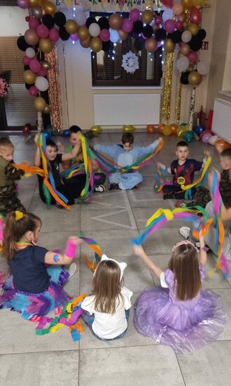 Sala wypełniła się kolorowymi strojami, muzyką i radosnym śmiechem. Były tańce, zabawy i słodki poczęstunek. Dziękujemy wszystkim za wspólnie spędzony, pełen uśmiechu czas!