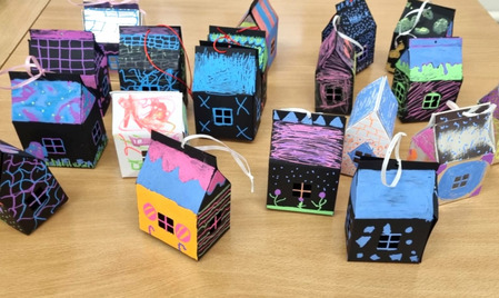 Kolorowa zabawa podczas ferii. Dzieci tworzyły fluorescencyjne domki