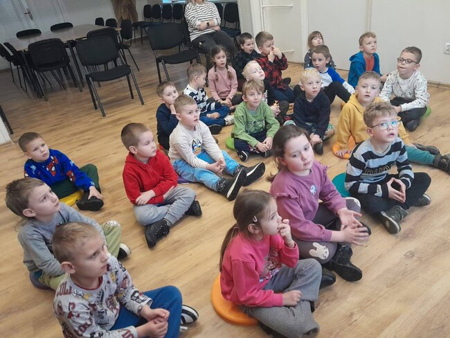 Podczas spotkania odbyła się również pogadanka o świątecznych zwyczajach i przygotowaniach do Świąt z perspektywy dzieci – przedszkolaki chętnie dzieliły się swoimi doświadczeniami i opowiadały, jak wyglądają przygotowania w ich domach.
