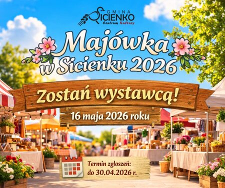 Zapraszamy wszystkich przedsiębiorców, twórców rękodzieła, producentów żywności i organizacje do udziału w niezapomnianej majówkowej atmosferze Sicienka!