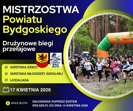 Serdecznie zapraszamy na Mistrzostwa Powiatu Bydgoskiego w Biegach Przełajowych, które odbędą się 17 kwietnia br. w Białych Błotach!