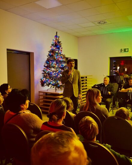 Przy wypełnionej po brzegi sali mieszkańców i zaproszonych gości wybrzmiały najpiękniejsze piosenki okołoświąteczne w jazzowych, nastrojowych aranżacjach, które na długo pozostaną w pamięci słuchaczy.