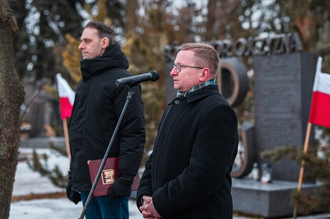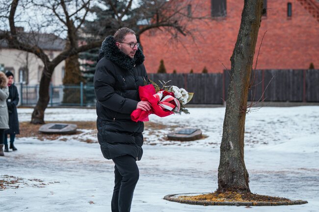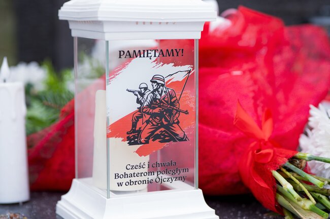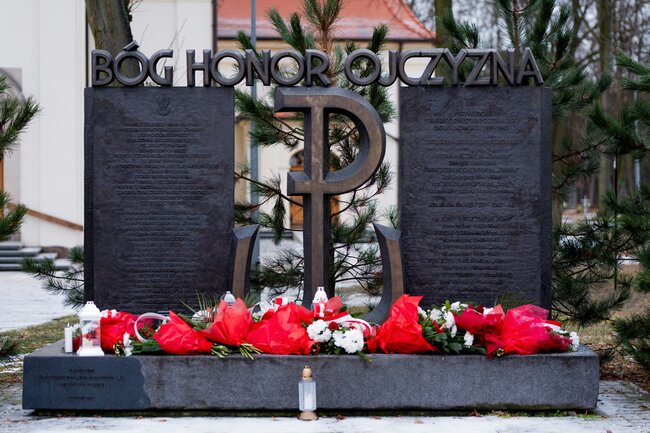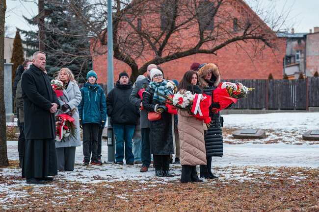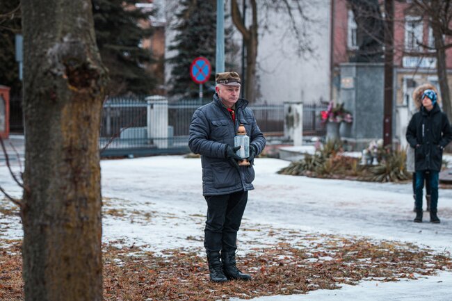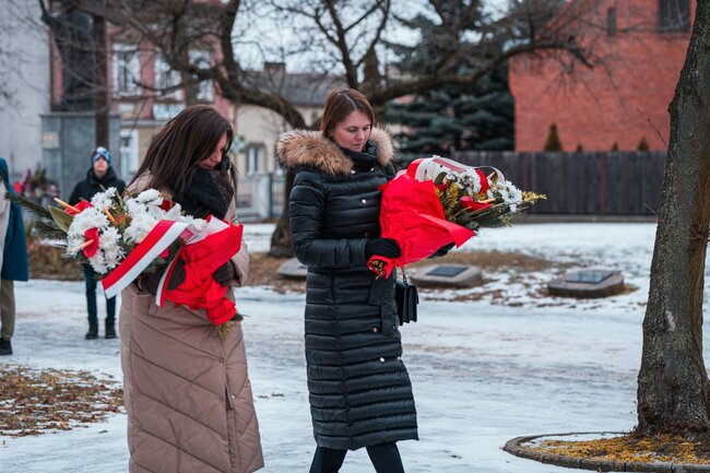 Z tej okazji delegacje złożyły wiązanki kwiatów oraz zapaliły znicze pamięci pod Pomnikiem Upamiętniającym Żołnierzy Armii Krajowej.