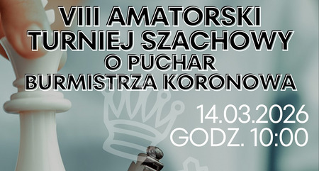 VIII Amatorski Turniej Szachowy o Puchar Burmistrza Koronowa odbędzie się #w hali MGOSiR w Koronowie w dniu 14 marca 2026 r.