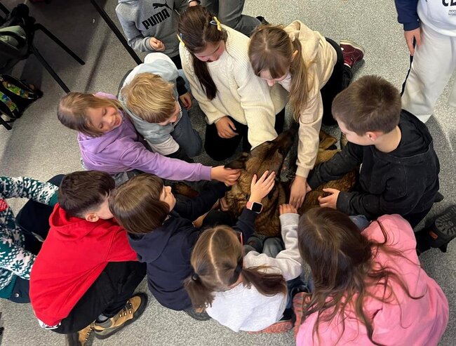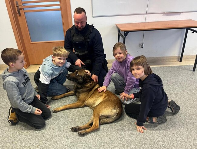 W spotkaniu wzięli udział również stróże prawa z Komendy Miejskiej Policji w Bydgoszczy - przewodnik psów służbowych młodszy aspirant Przemysław Kubiak wraz ze swoim czworonożnym przyjacielem Badim oraz policjantka wydziału techniki kryminalistycznej aspirant sztabowy Karolina Łosińska, którzy opowiedzieli uczniom o specyfice swojej pracy.
