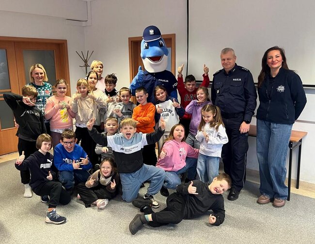 Miłą niespodzianką było również spotkanie z Polfinem. Dzieci chętnie przytulały się do policyjnej maskotki oraz robiły sobie z nią zdjęcia.