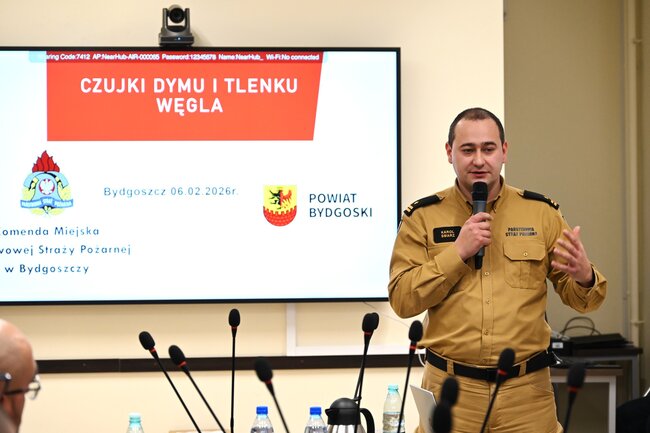 Z inicjatywy Komendy Miejskiej Państwowej Straży Pożarnej w Bydgoszczy, w piątek, 6 lutego #w Starostwie Powiatowym w Bydgoszczy odbyło się przekazanie czujek dymu oraz czujek tlenku węgla, których celem jest poprawa bezpieczeństwa mieszkańców Powiatu Bydgoskiego.