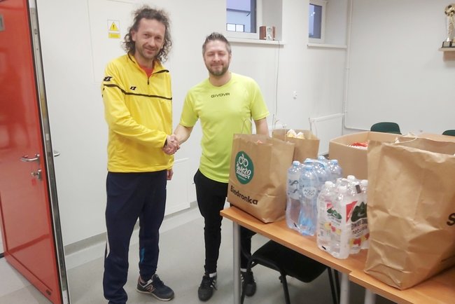 Pakowane były smakołyki dla uchodźców. Przy okazji można było obejrzeć sparing młodzików młodszych ze Wtelna i Pruszcza.