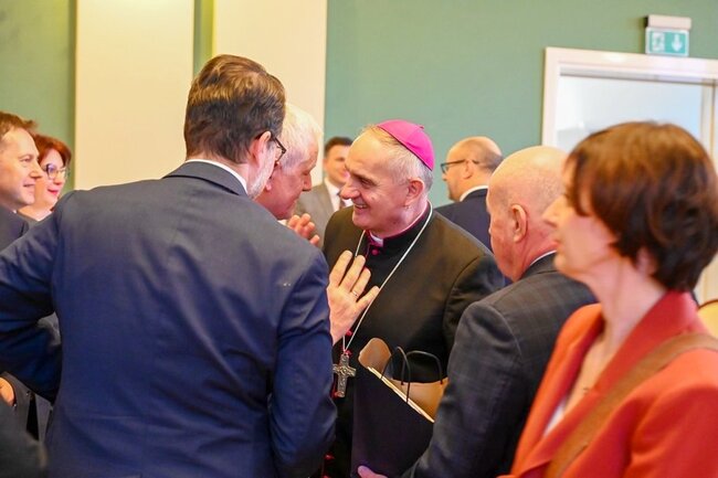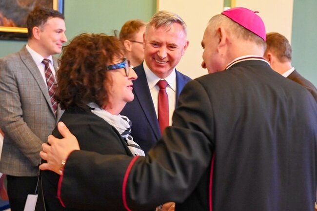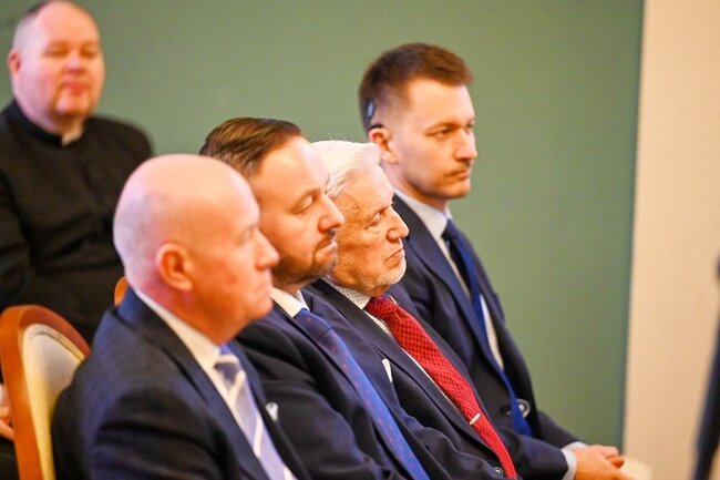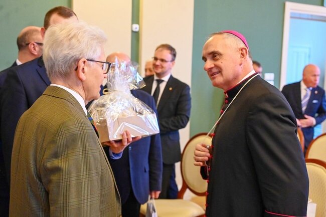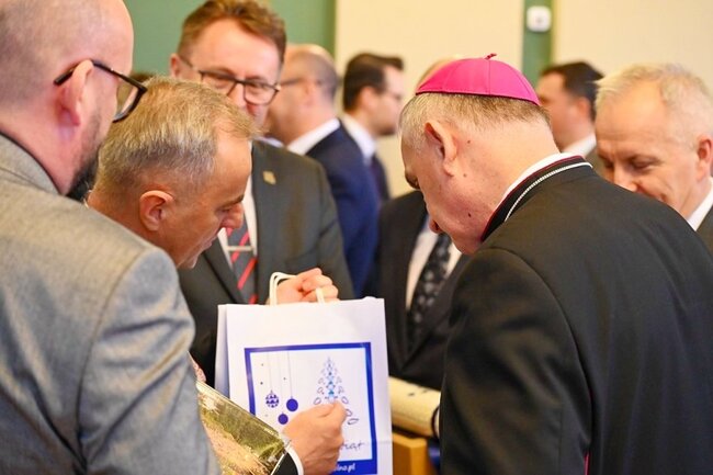 Według wicewojewody wielkopolskiego czas obchodów Bożego Narodzenia i świętowania Nowego Roku nie powinien ograniczać się tylko do wspominania tradycji. – Ten rodzący się maleńki Pan Jezus, owinięty w pieluszki, położony w żłobie, to cząstka nagiej prawdy, która dzisiaj tak często bywa zakłamywana, przeinaczana. Chociaż prawda zwycięży i zawsze się przebije, to zauważmy, jak ten otaczający świat potrafi dzisiaj ją niszczyć, wykorzystywać i nie w tym świetle stawiać, w jakim być powinna. Więc cieszymy się, że przychodząc tutaj możemy skorzystać z tego duchowego wsparcia. Z tego, że tutaj znajdziemy ten element odwzorowania dla tej małej, nagiej prawdy, rodzącej się w sercu każdego z nas – dodał Jarosław Maciejewski. – Pragnę podziękować księdzu biskupowi za niezwykle ważne, integrujące spotkanie. Mocno wybrzmiało, że żyjemy w trudnym czasie. Jako samorządowcy w szczególny sposób odczuwamy niepokój naszych mieszkańców o pokój, który jest zagrożony. Tak, jak zagrożony jest świat pewnych wartości, utrwalony przez dziesięciolecia – dodał członek zarządu województwa kujawsko-pomorskiego – Marek Wojtkowski.