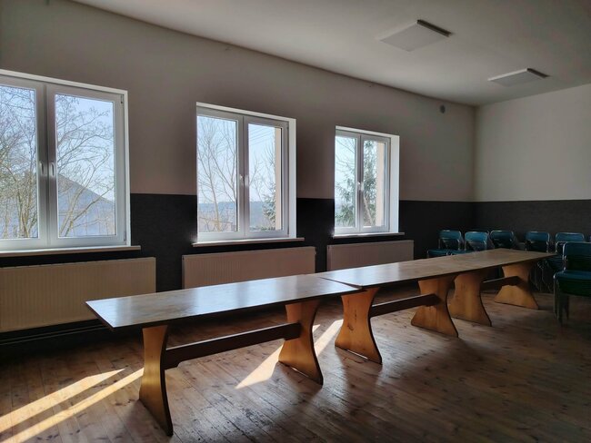 Świeżo wyremontowane wnętrza: kuchnia, korytarz i sala wiejska zyskały nowy blask, co znacząco wpłynie na komfort wszystkich użytkowników.