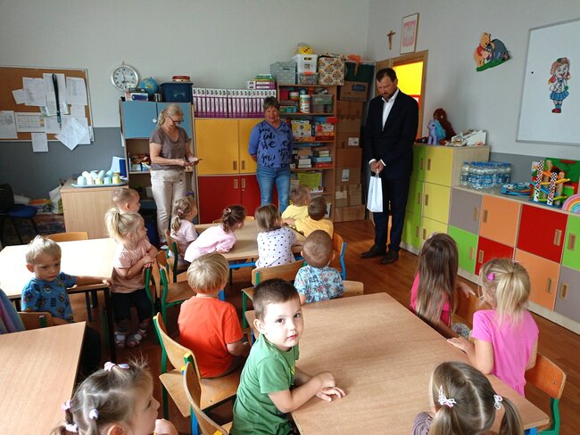 Wójt wręczył naszym Przedszkolakom słodki upominek z okazji sobotniego święta - Dnia Przedszkolaka.
