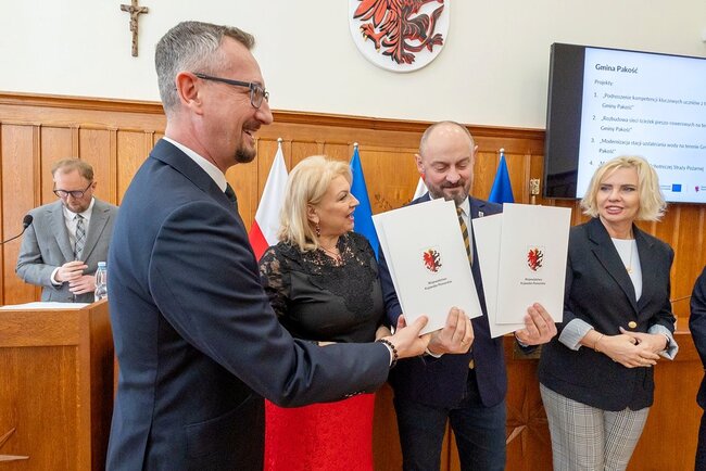 Trzy przedsięwzięcia inwestycyjne – modernizację gminnej stacji uzdatniania wody, budowę ścieżki rowerowej wzdłuż drogi wojewódzkiej i modernizację remizy strażackiej – planuje też gmina Pakość w powiecie inowrocławskim. Planowane koszty wynoszą w sumie blisko 5,5 mln złotych, kwoty na odebranych dziś umowach sumują się do 3 mln 600 tys. złotych.