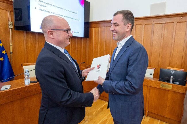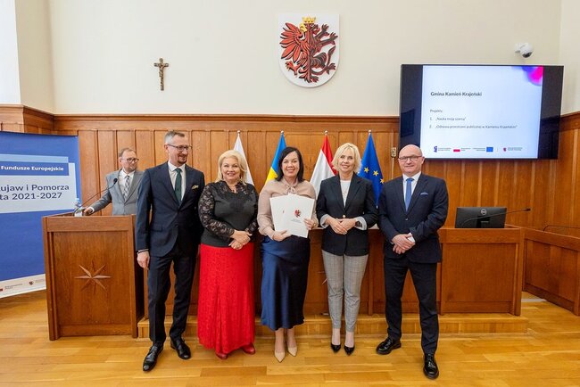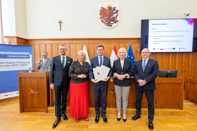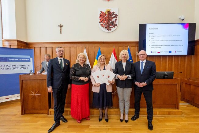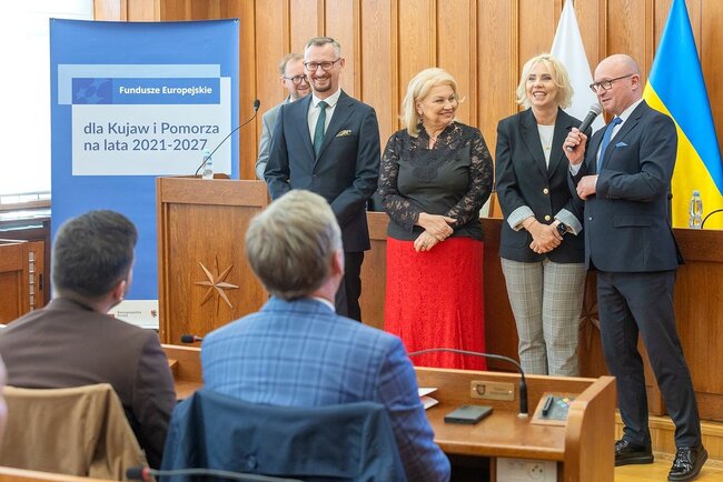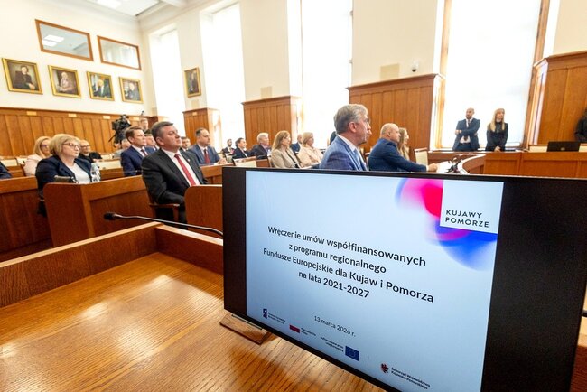 Czterdzieści umów o finansowanie projektów #o łącznej wartości 44 mln złotych odebrali w piątek (13 marca) w Urzędzie Marszałkowskim przedstawiciele beneficjentów naszego programu regionalnego Fundusze Europejskie dla Kujaw i Pomorza (FEdKP). Tym razem uruchamiamy środki m.in. na odnowę przestrzeni publicznej, gospodarkę wodną, inwestycje proekologiczne, uzbrojenie terenów inwestycyjnych i działania służące podnoszeniu poziomu kształcenia. W uroczystym spotkaniu uczestniczyli członek zarządu województwa Dariusz Kurzawa i członek zarządu województwa Marek Wojtkowski oraz przewodnicząca sejmiku województwa Elżbieta Piniewska i wiceprzewodnicząca sejmiku Katarzyna Lubańska.