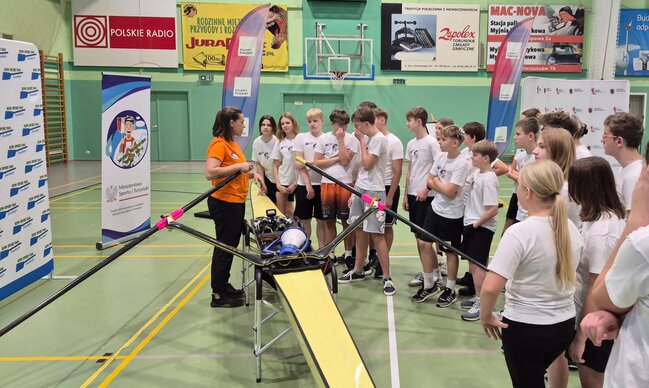 Uczniowie mieli szansę spróbować wiosłowania na ergometrach, poznać tajniki techniki i poczuć, jak wygląda prawdziwy trening olimpijski. Nie zabrakło też rozmów o zdrowym odżywianiu i dbaniu o formę, bo sport i odpowiedni styl życia idą w parze. Ruch, zabawa i mnóstwo pozytywnej energii – to był naprawdę udany czas!