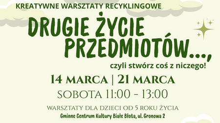 Zapraszamy na kreatywne warsztaty recyklingowe do Gminnego Centrum Kultury w Białych Błotach!