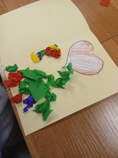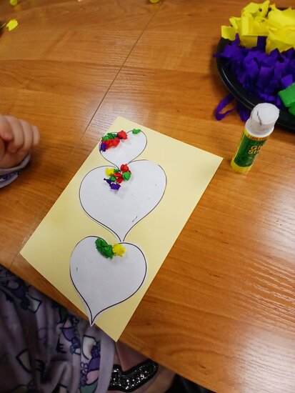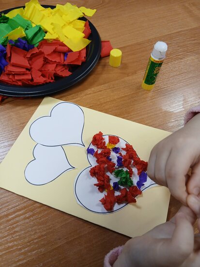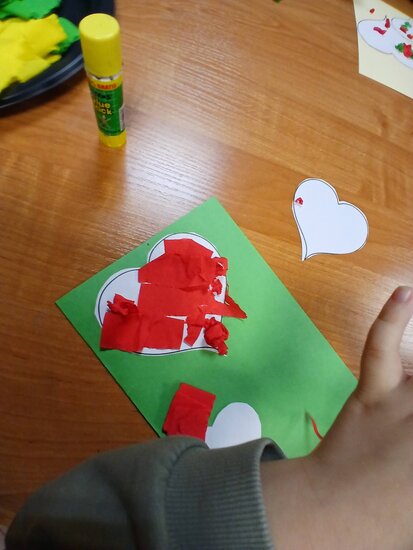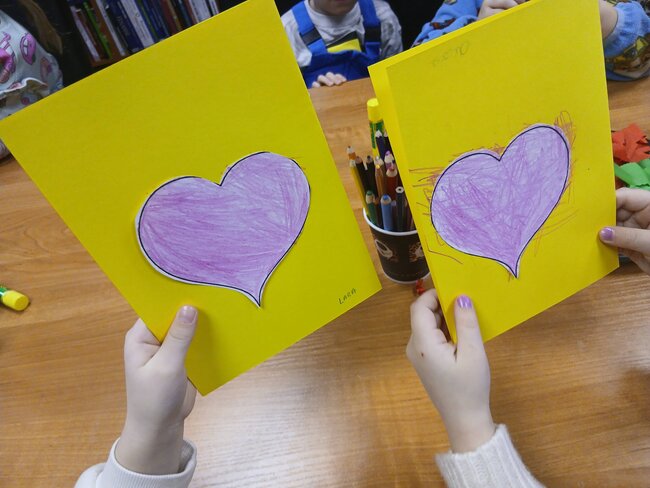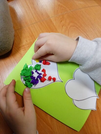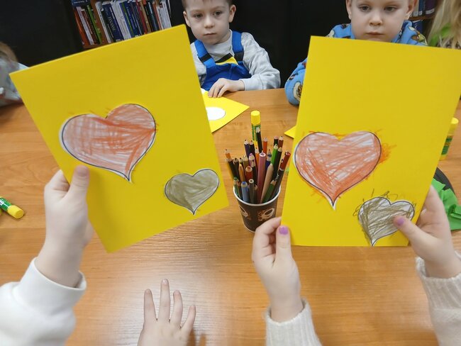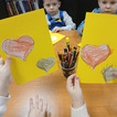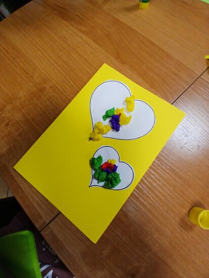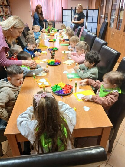 Na podstawie bajki pt. "Franklin mówi Kocham Cię" dowiedziały się, że najlepszym prezentem jest przytulas, całus i słowo kocham cię. Myślę, że każda babcia i dziadek przyznają tu rację. W ramach warsztatów przedszkolaki zrobiły własnoręcznie laurkę z kolorowymi serduchami.