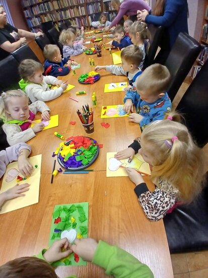 Zajęcia biblioteczne mają na celu zachęcić małe dzieci do korzystania z wartościowych książeczek. Cieszy nas fakt, że maluchom biblioteka kojarzy się z ciepłym i przyjaznym miejscem, gdzie chętnie przychodzą z rodzicami.