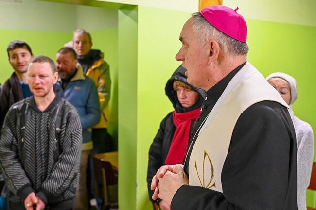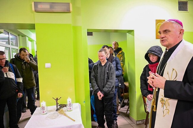 Jedni się kąpali, inni zmieniali odzież, a kolejni jedli ciepły posiłek, ciasto, pijąc przy nim kawę lub herbatę. – Taka informacja z ostatniej chwili, wyjechał pomocowy transport z Holandii, a w jego ramach specjalna przesyłka dla Centrum Pomocy „Betlejem”. Będą kolejne opatrunki i odzież – powiedział ks. prałat Wojciech Przybyła. – Dziękuję za spotkanie, chłopaki trzymajcie się. Kochanym wolontariuszom, księdzu Krzysztofowi dziękuję – mówił przed wyjściem bp Krzysztof Włodarczyk. – Bardzo dobry dzień, przede wszystkim Eucharystia, a później czas z księdzem biskupem, wspólne rozmowy, ciepła kolacja – podsumowała koordynator centrum Ewa Raj.