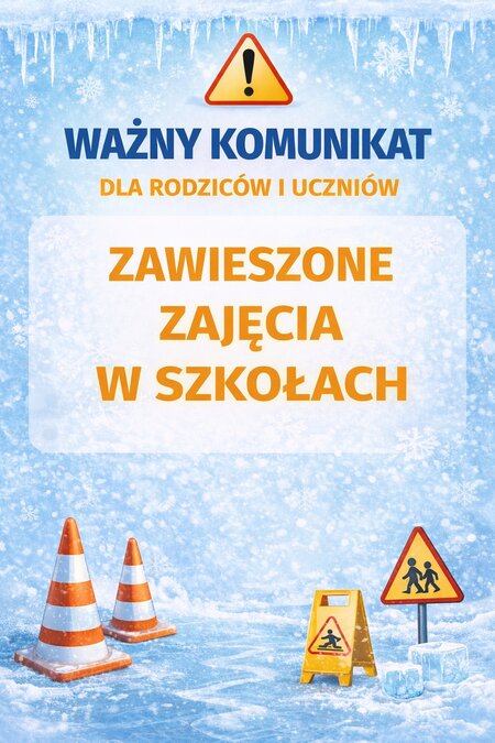 W związku bezpośrednim zagrożeniem bezpieczeństwa uczniów, wynikającym z trudnej #sytuacji meteorologicznej występującej na terenie kraju, organ prowadzący w porozumieniu z dyrektorami placówek podjął decyzję o zawieszeniu zajęć w szkołach podstawowych, dla których jest organem prowadzącym (Zarządzenia Nr 6/2026 Wójta Gminy Białe Błota z dnia 14 stycznia 2026 roku), na okres od dnia 15 stycznia do dnia 16 stycznia 2026 roku.