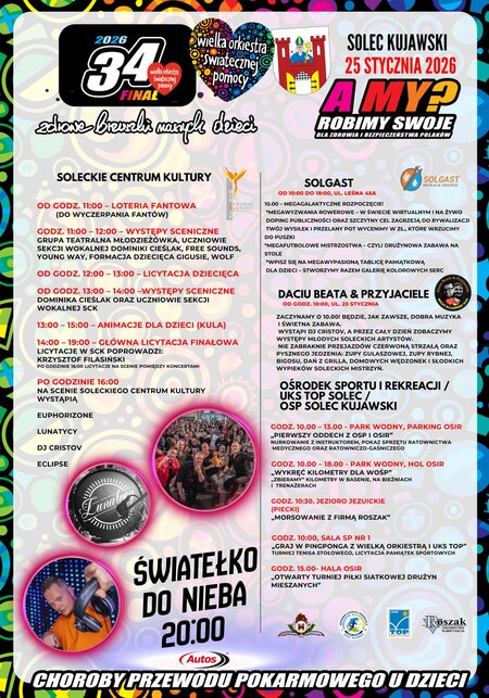 25 stycznia w Soleckim Centrum Kulury i Parku Wodnym odbędzie się 34. FINAŁ WOŚP.