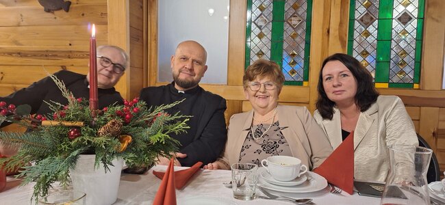 Uroczystą i podniosłą oprawę duchową zapewnił ksiądz proboszcz Mirosław Goślinowski oraz ksiądz wikariusz Andrzej Marmurowicz. Po życzeniach, do których dołączyli zaproszeni goście, wszyscy łamali się opłatkiem życząc sobie przede wszystkim zdrowia i pomyślności w nadchodzącym Nowym Roku. Całość wrażeń dopełniała wyjątkowa, rodzinna atmosfera.