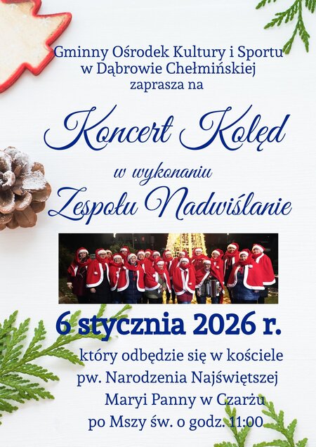 W ferworze świątecznych przygotowań, już dziś, gorąco zapraszamy wszystkich mieszkańców gminy Dąbrowa Chełmińska na wspólne kolędowanie.