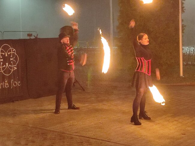 Zwieńczeniem wydarzenia był pokaz ognia w wykonaniu grupy Arta Foc. Widowisko przyciągnęło uwagę uczestników i zakończyło Mikołajki efektownym akcentem.