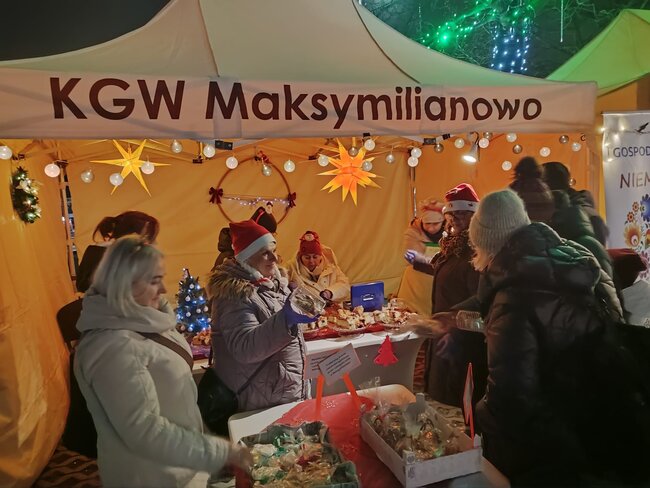 Wszystkie Koła Gospodyń Wiejskich z naszej gminy przygotowały stoiska z potrawami i wypiekami. Nie zabrakło również rękodzieła świątecznego oraz stoiska promocyjnego GOK-u, na którym dostępne były stroiki, ozdoby i inne wyroby wykonane podczas zajęć w świetlicach. Ważnym elementem była także obecność stoiska charytatywnego Stowarzyszenia „Łatwo Pomagać”, które prowadziło kiermasz na rzecz Łukasza. Organizatorzy przekazali podziękowania mieszkańcom za okazaną życzliwość i wsparcie.