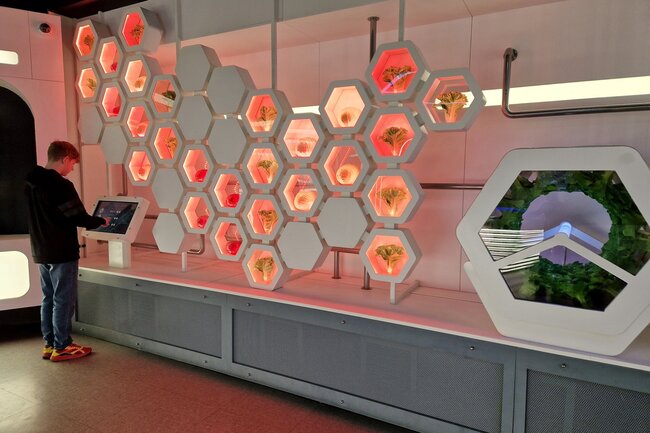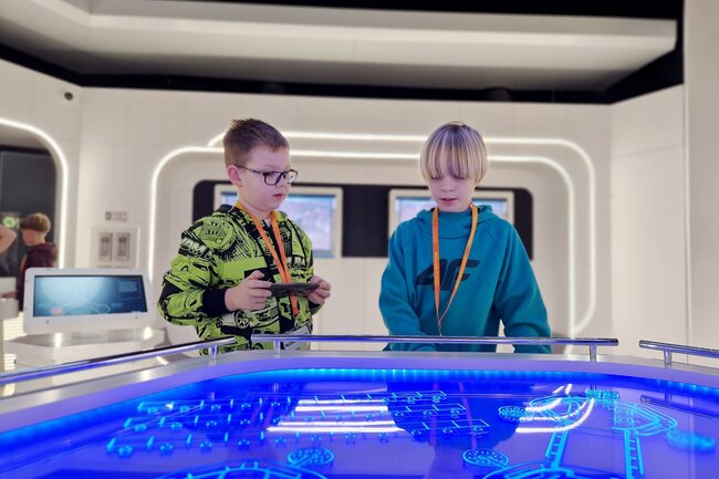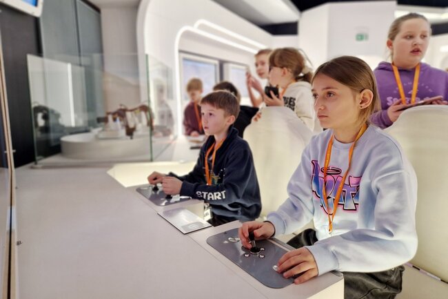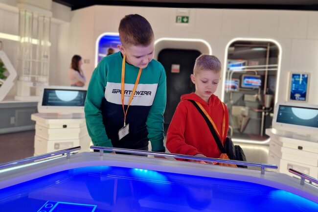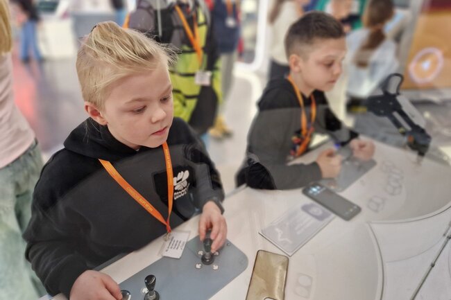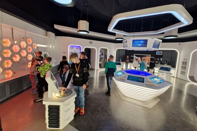 Następnie przeszliśmy do interaktywnej wystawy „Baza Mars 17#”, która przeniosła nas na powierzchnię Czerwonej Planety. Mieliśmy okazję zobaczyć, jak może wyglądać życie na Marsie i poczuć się jak prawdziwi badacze kosmosu!
