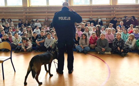 Na zaproszenie policjantów z Komisariatu Policji w Koronowie, przewodnik psa #służbowego z czworonożnym przyjacielem z bydgoskiej komendy miejskiej wspólnie z ratownikami WOPR Województwa Kujawsko-Pomorskiego oraz strażakami OSP w Koronowie przeprowadzili działania profilaktyczne skierowane do dzieci i młodzieży. W ramach akcji „Kręci mnie bezpieczeństwo w zimie” odwiedzili uczniów Szkoły Podstawowej nr 1 oraz Szkoły Podstawowej nr 2 w Koronowie, gdzie odbyły się prelekcje poświęcone zasadom bezpiecznego wypoczynku w czasie zimowej przerwy od nauki.