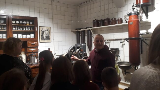 12 lutego odwiedziliśmy kultową „Aptekę pod Łabędziem”, która jest częścią Muzeum Okręgowego im. L. Wyczółkowskiego w Bydgoszczy. Wzięliśmy tam udział w zajęciach „Od patyka do muzeum”. Naszym przewodnikiem był charyzmatyczny pan Dariusz Okoński, który oprowadził nas po izbie recepturowej, ekspedycyjnej oraz laboratorium galenowym.