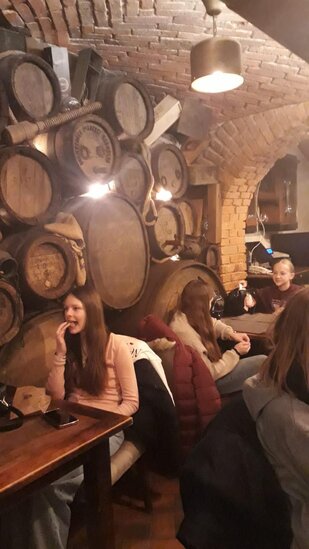 Dzień naszej wycieczki przypadł w tłusty czwartek, więc skierowaliśmy następnie nasze kroki do cukierni Sowa, gdzie czekały na nas pyszne, pachnące pączki. W myśl zasady „Wszystkie diety dziś na boku, tłusty czwartek jest raz w roku” każdy zjadł minimum jednego pączka… żeby szczęście nas nie opuściło!.