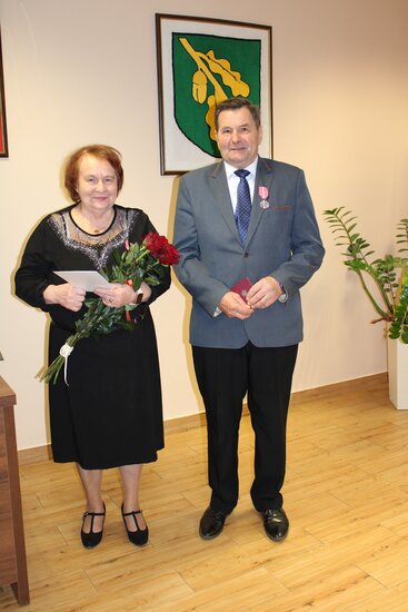Odznaczeni przez Wójta Gminy Dąbrowa Chełmińska Radosława Ciechackiego - Medalami od Prezydenta RP za 50-lecie pożycia małżeńskiego zostali Państwo: